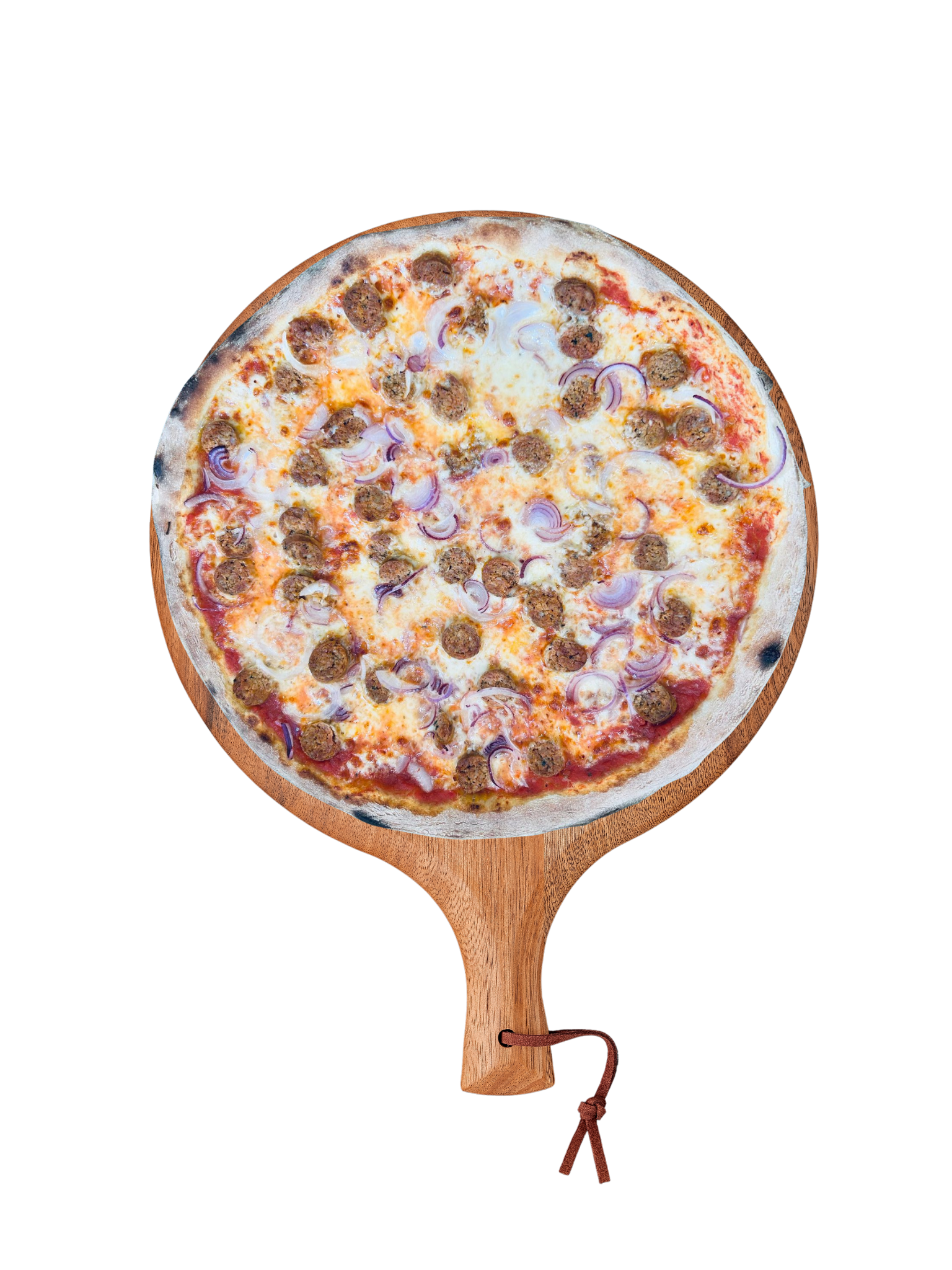 Notre spécialité : des pizzas faites maison, de la pâte jusqu’à la sauce tomate.